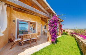 The villa is bright and comfortable, consisting of: living room with breathtaking views of the Island of Tavolara, access to the terrace and equipped with a double sofa bed. a double bedroom. a double bedroom or with two single beds depending on availability. a bathroom with shower and window. a functional kitchen equipped with fridge, freezer, oven, microwave, dishwasher and kettle. a covered terrace where you can comfortably spend summer evenings and also ideal for having breakfast and lunch outdoors. two solariums from which you can admire the view while sipping a good wine or simply sunbathing. It includes a private parking space adjacent to the villa.